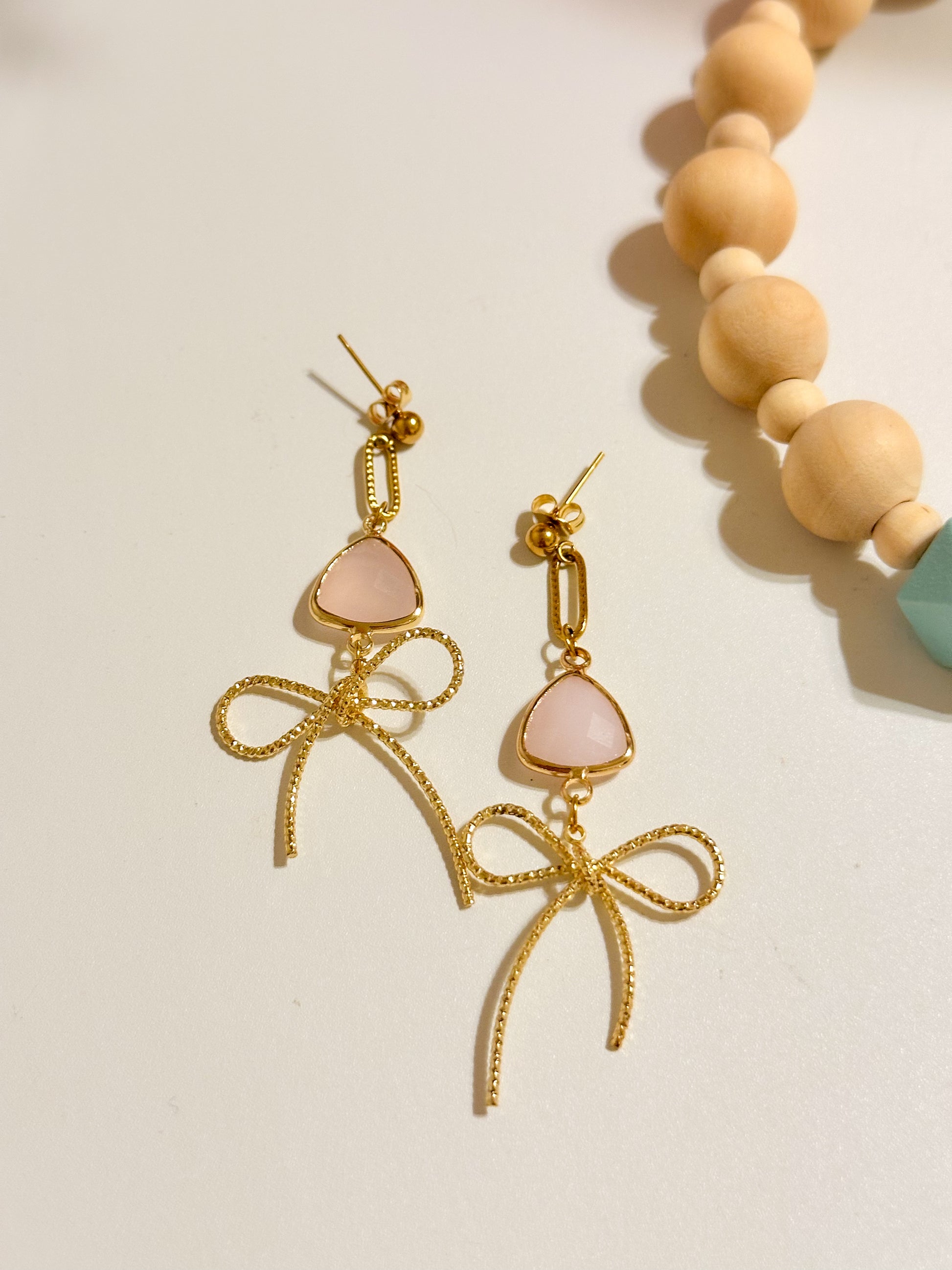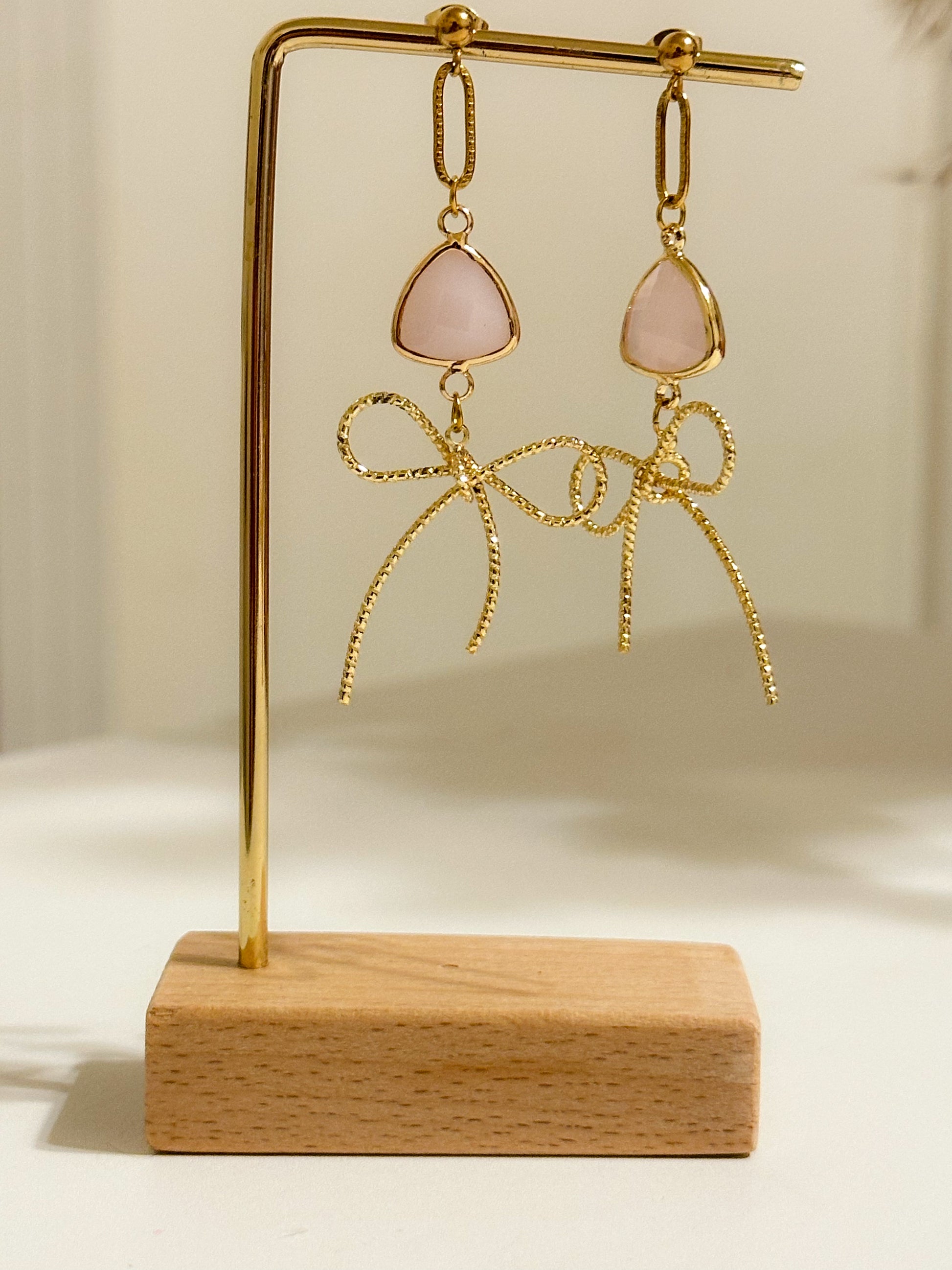 These beautiful earrings feature delicate gold bows and are crafted with secure ball studs for comfortable wear. Perfect for any occasion, these earrings are a must-have for any stylish and sophisticated woman!